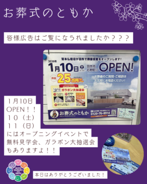 お葬式のともか OPEN!! 2026.1.9 イベント カテゴリ イベント スタッフ紹介 勉強会 施設紹介 日常 最近の投稿 年末年始を振り返ろう 能登和楽の里 お葬式のともか OPEN!! 2026年スタート!!今年の目標 能登和楽の里 2026年あけましておめでとうございます 能登和楽の里 2025年ありがとうございました 能登和楽の里